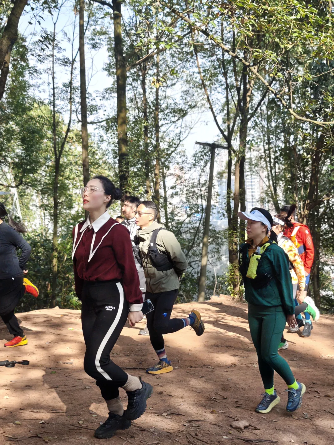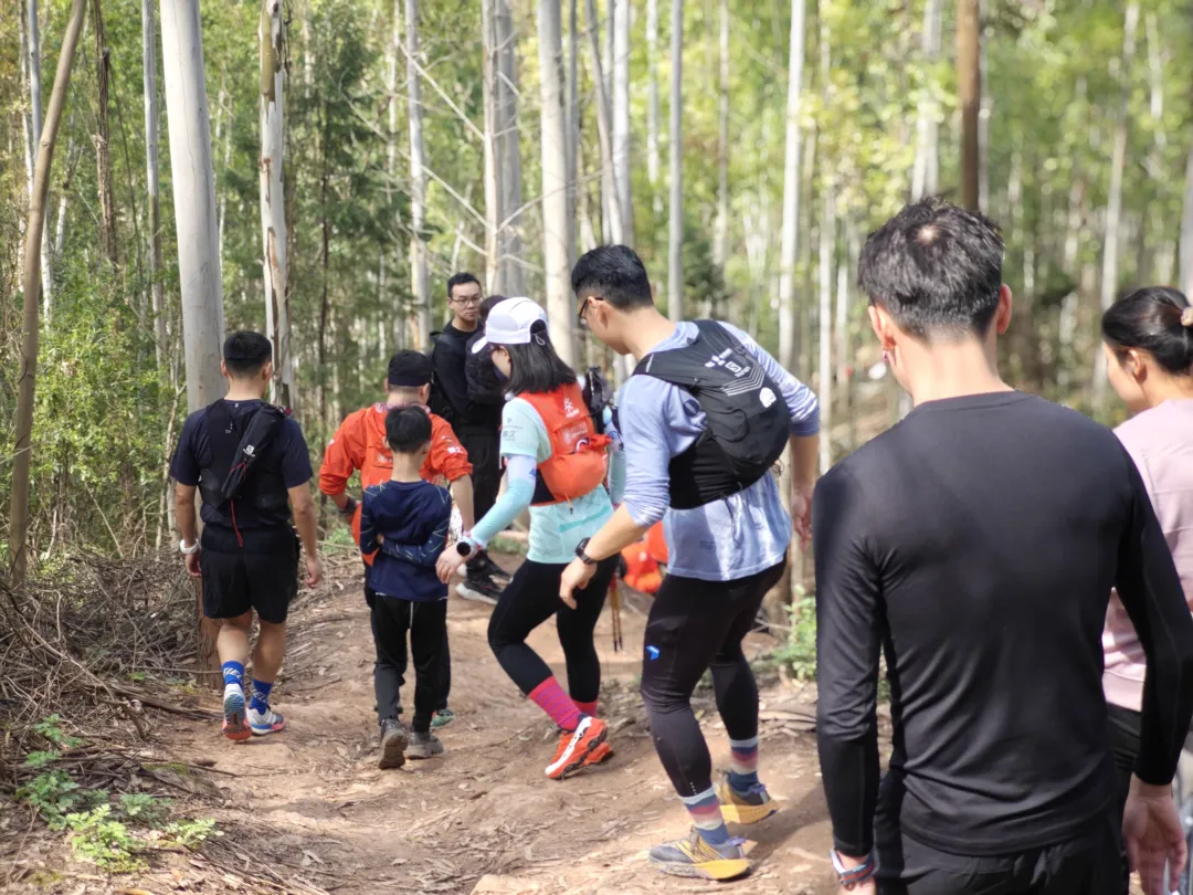 在接下来的训练中,山教练带品睿校友会跑友们穿梭于茂密的山林之间,